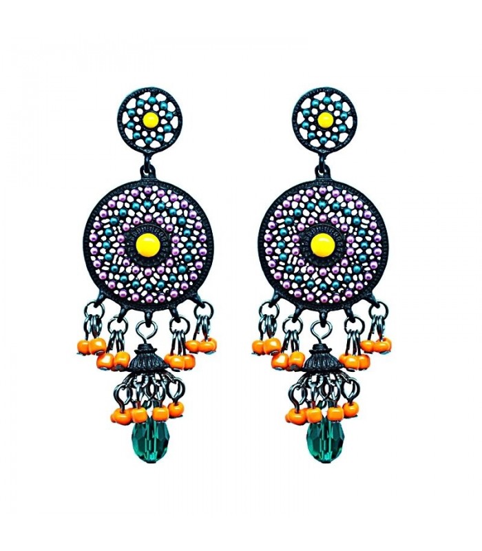 Make an enthralling elegant fashion statement with this fetching black and yellow beaded chandelier drop earrings. Featuring tri colour ombre beads forming a lusciously feminine, crystal lace design.