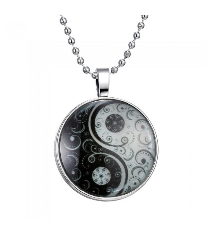 Keep peace within yourself with this yin and yang inspired glow in the dark necklace. This stunning necklace can be worn on any occasion. Yin and Yang is one of the most important spiritual symbols. Yin and Yang is the energy of the entire universe, truth, supreme spirit, and absolute consciousness. This handcrafted pendant is 1 inch wide with a glass dome top. The stainless steel ball chain is 60cm in length and this inspirational piece of jewellery can be worn by either sex.